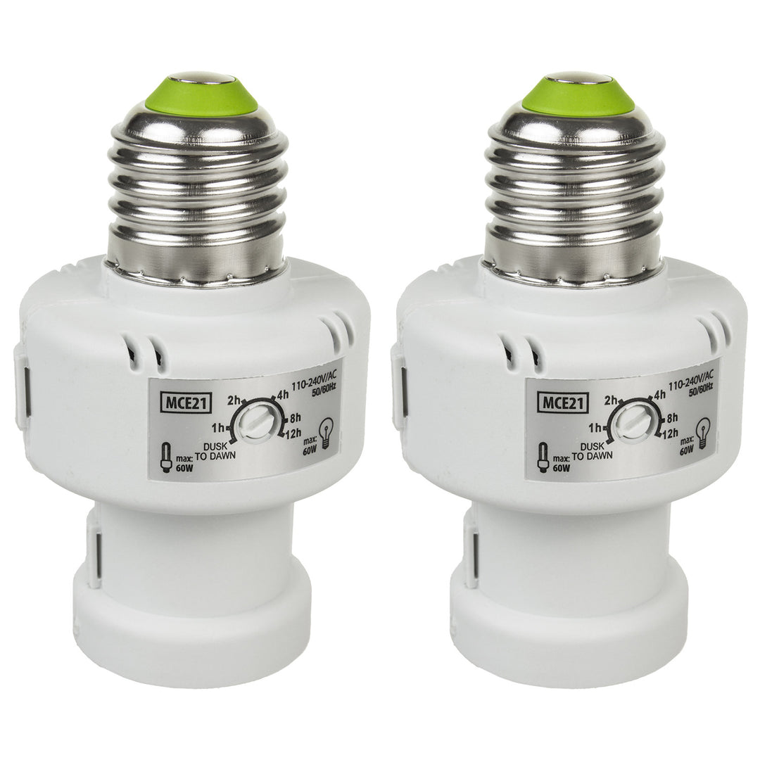 Maclean fitting, E27, max. 100W, met schemersensor, timer, wit, MCE21W, 2 stuks