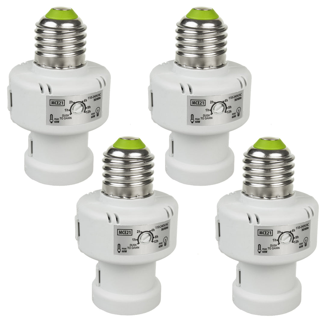 Maclean fitting, E27, max. 100W, met schemersensor, timer, wit, MCE21W, 4 stuks