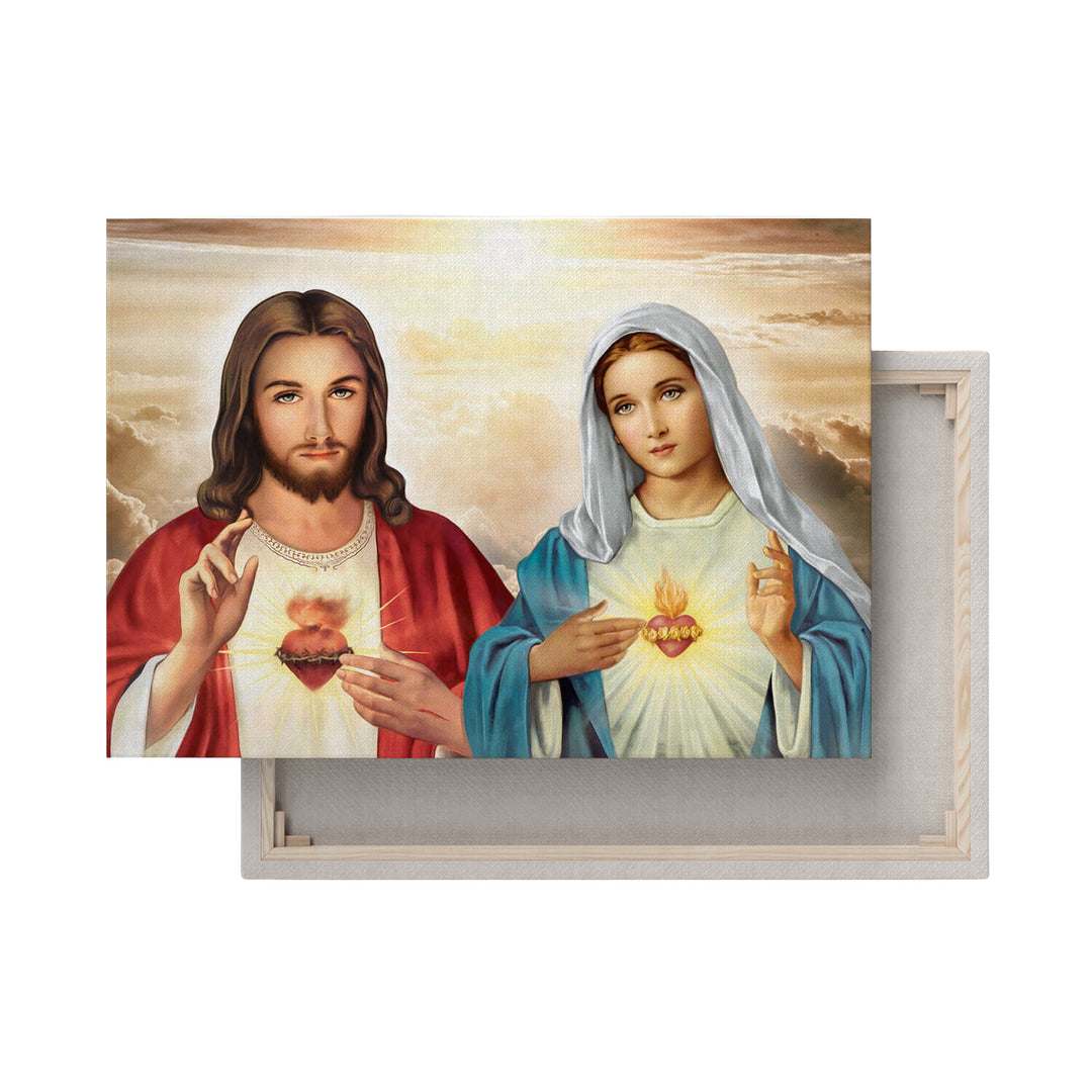 Canvas schilderij Hart van Jezus Hart van Maria 60x90 cm