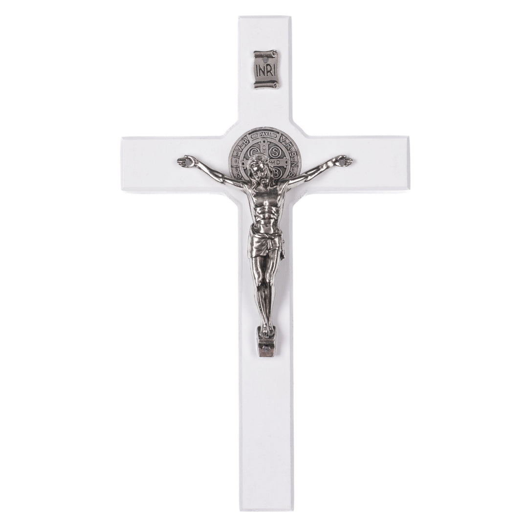 Houten decoratief kruis hangend wit 18x10x1.8cm