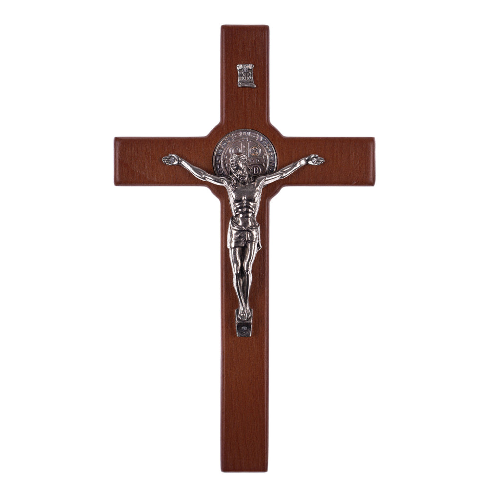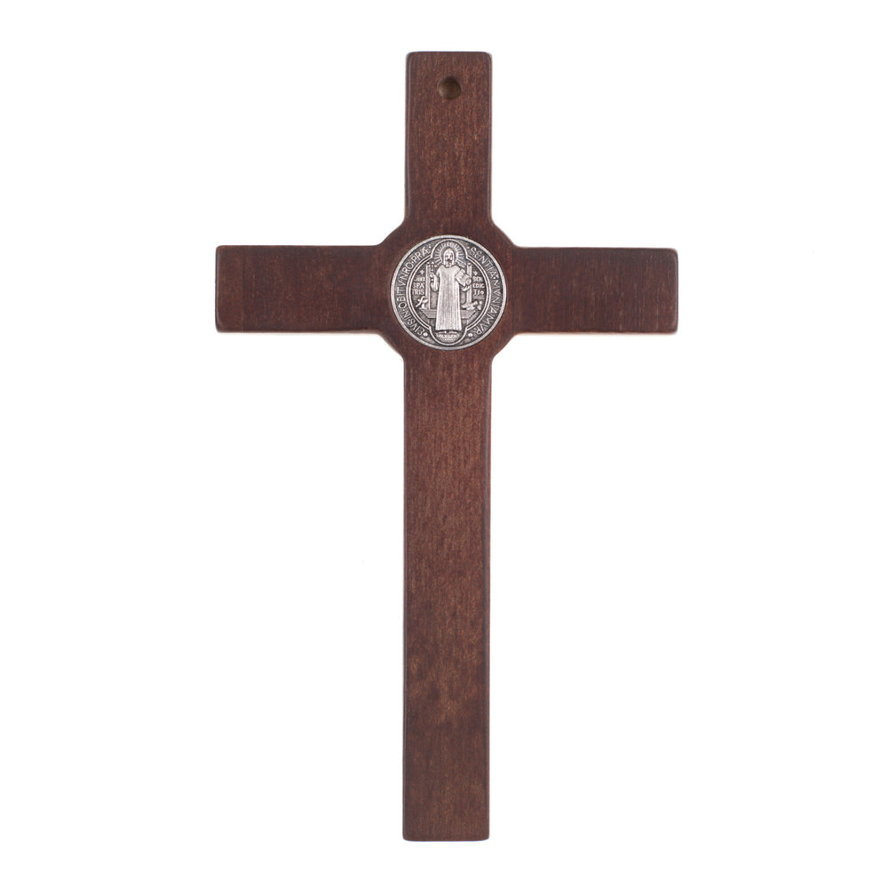 Houten Sint Benedictus kruis hangend met pasque brons 18x10x1.8cm