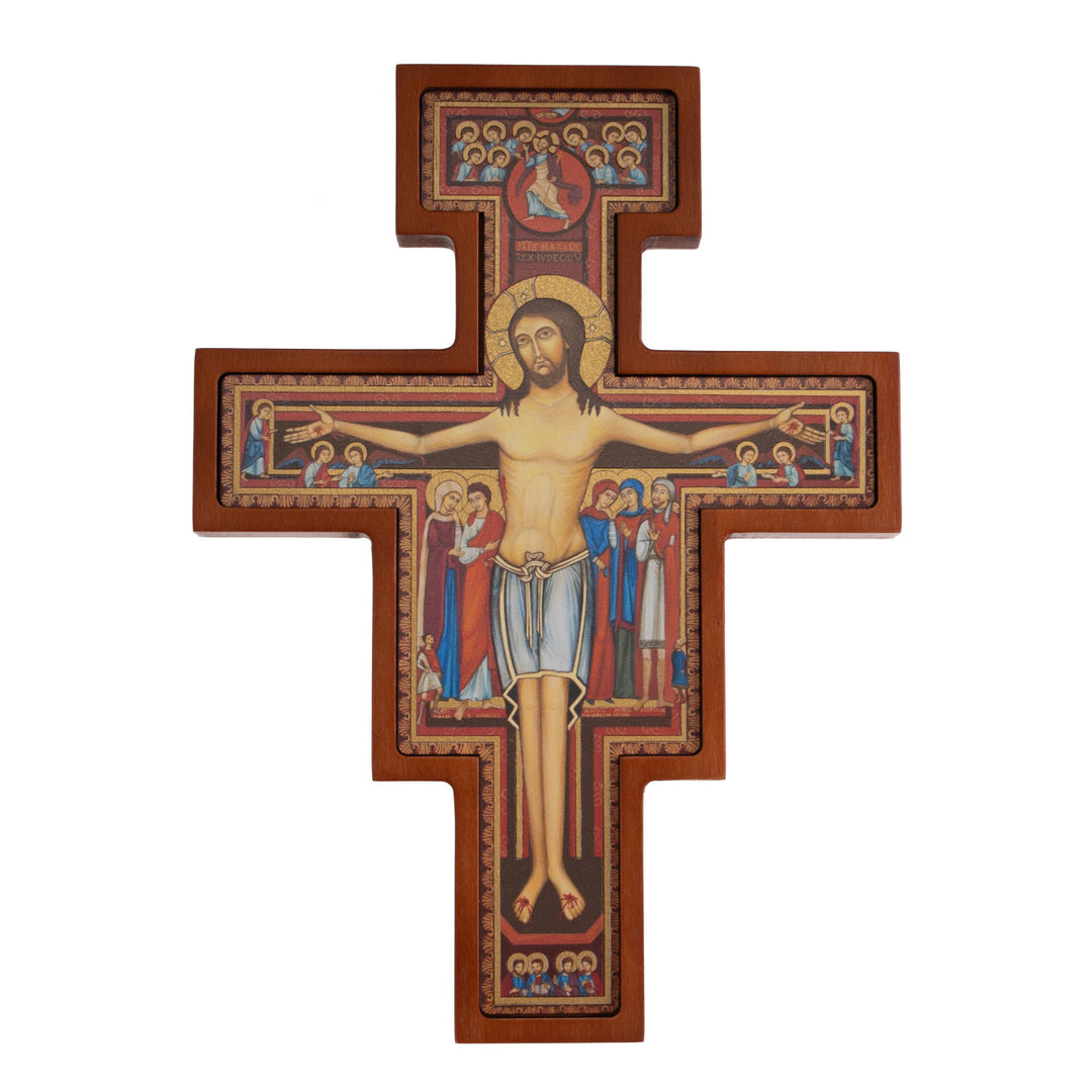 Houten kruis van San Damiano - Sint Franciscus kruis bruin 28x20x1.8cm