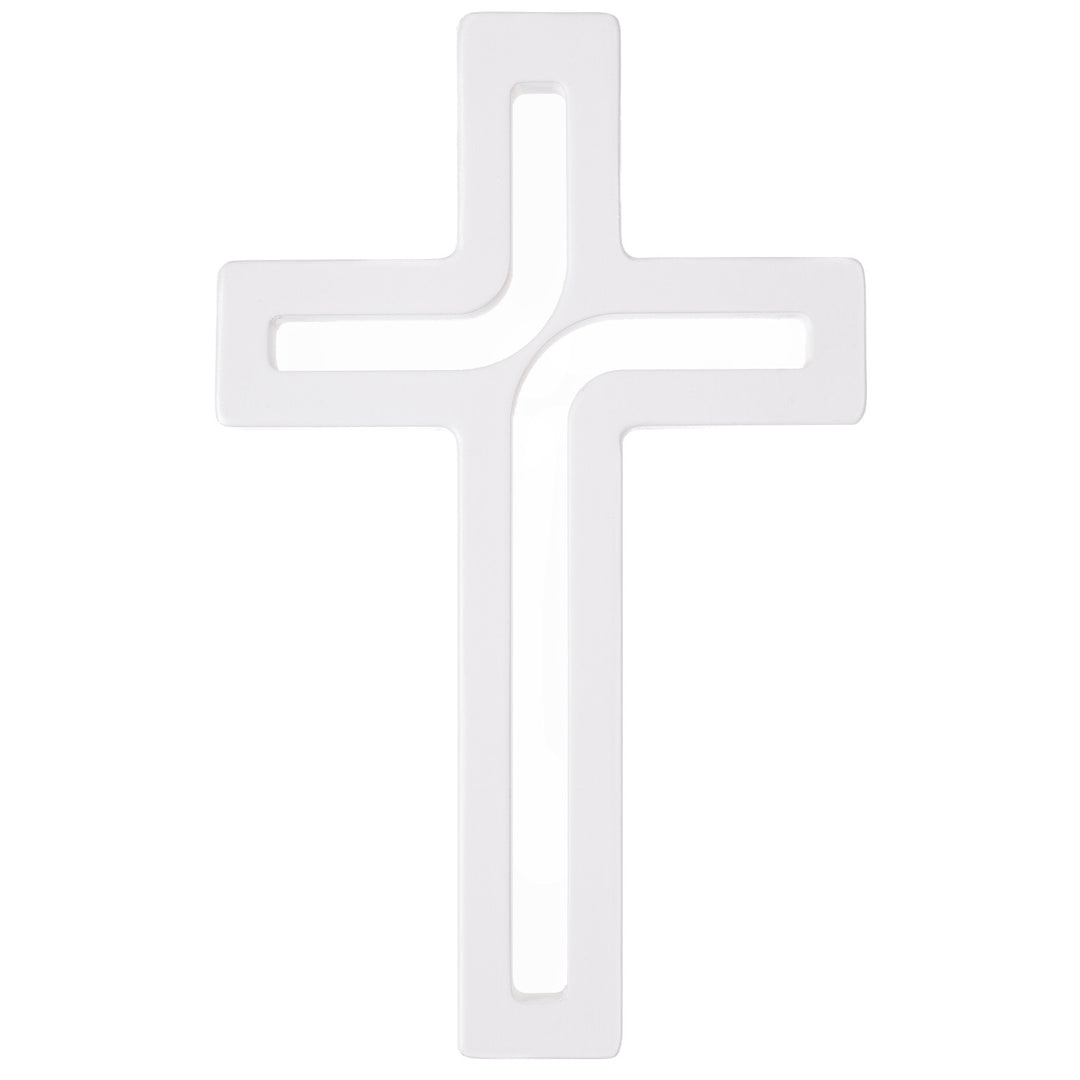 Houten hangend kruis modern wit 18x12x1,5 cm