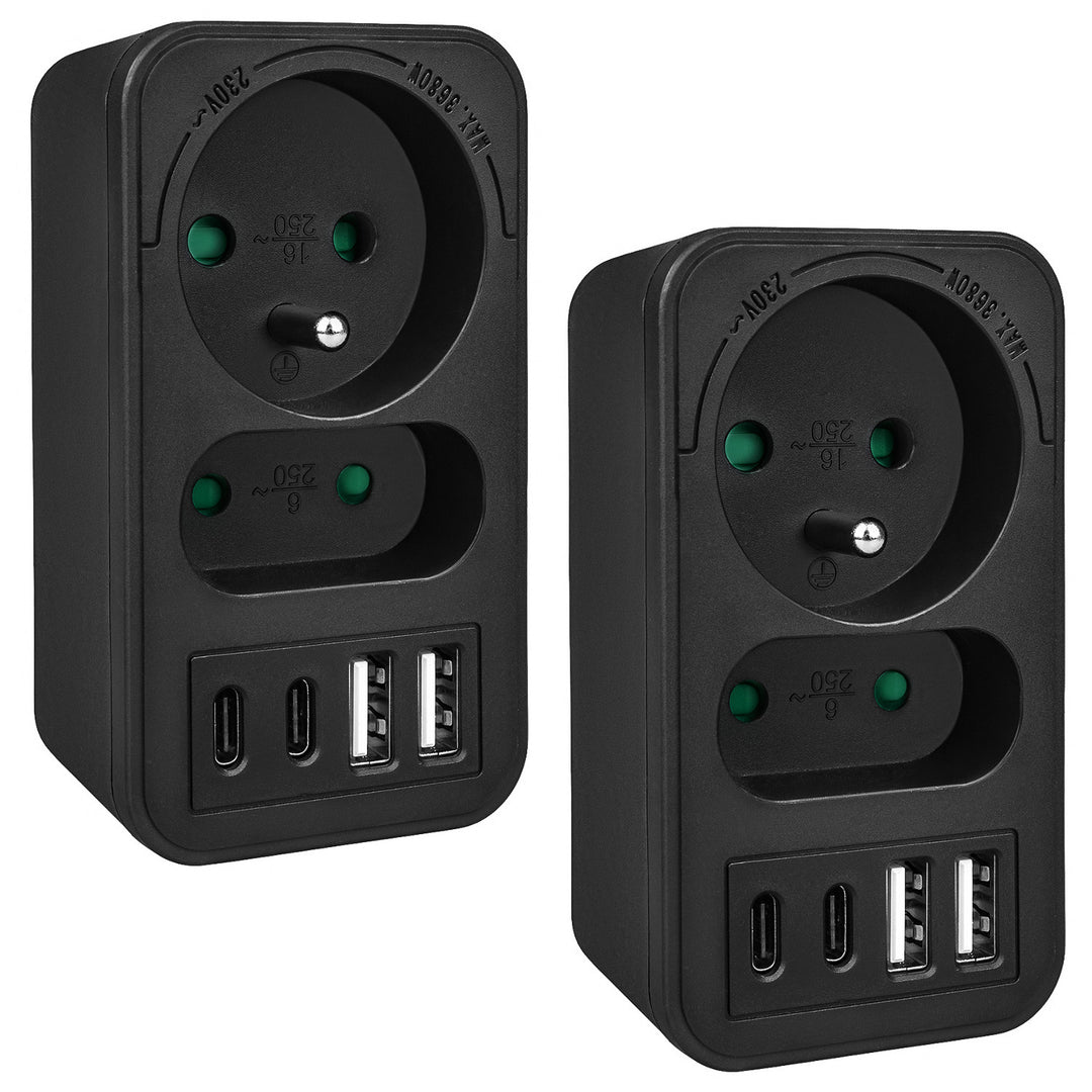 Maclean contactdoos x2 + 4xUSB, splitter met 2 contactdozen, 2xUSB A, 2xUSB C PD 20W, 1x16A + 1x6A, MCE249 F/B, 2 stuks