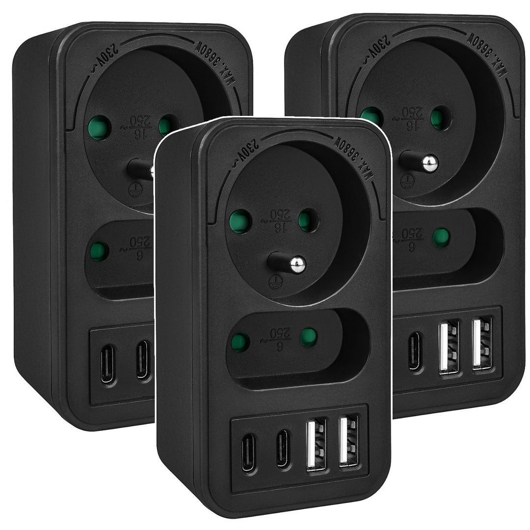 Maclean contactdoos x2 + 4xUSB, splitter met 2 contactdozen, 2xUSB A, 2xUSB C PD 20W, 1x16A + 1x6A, MCE249 F/B, 3 stuks