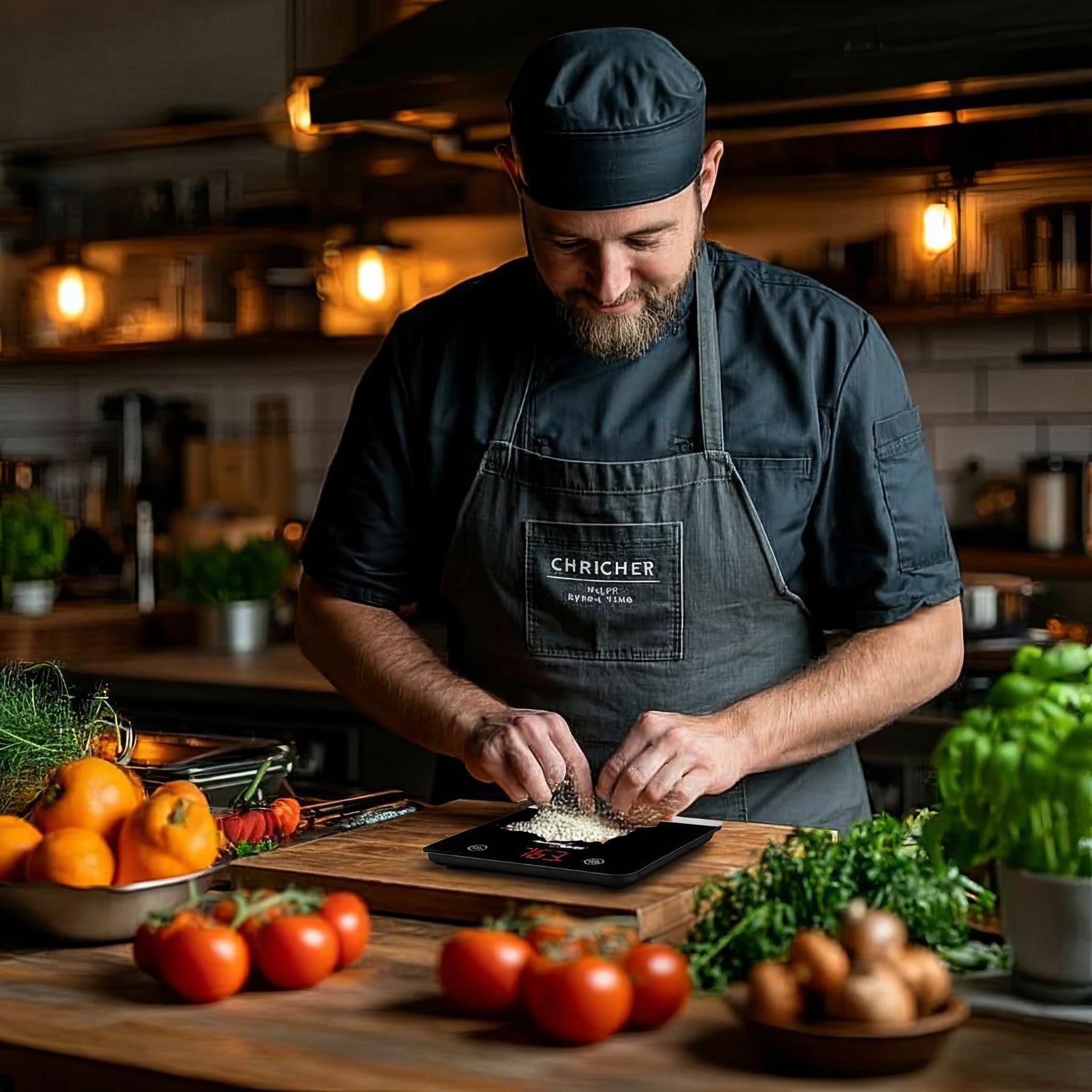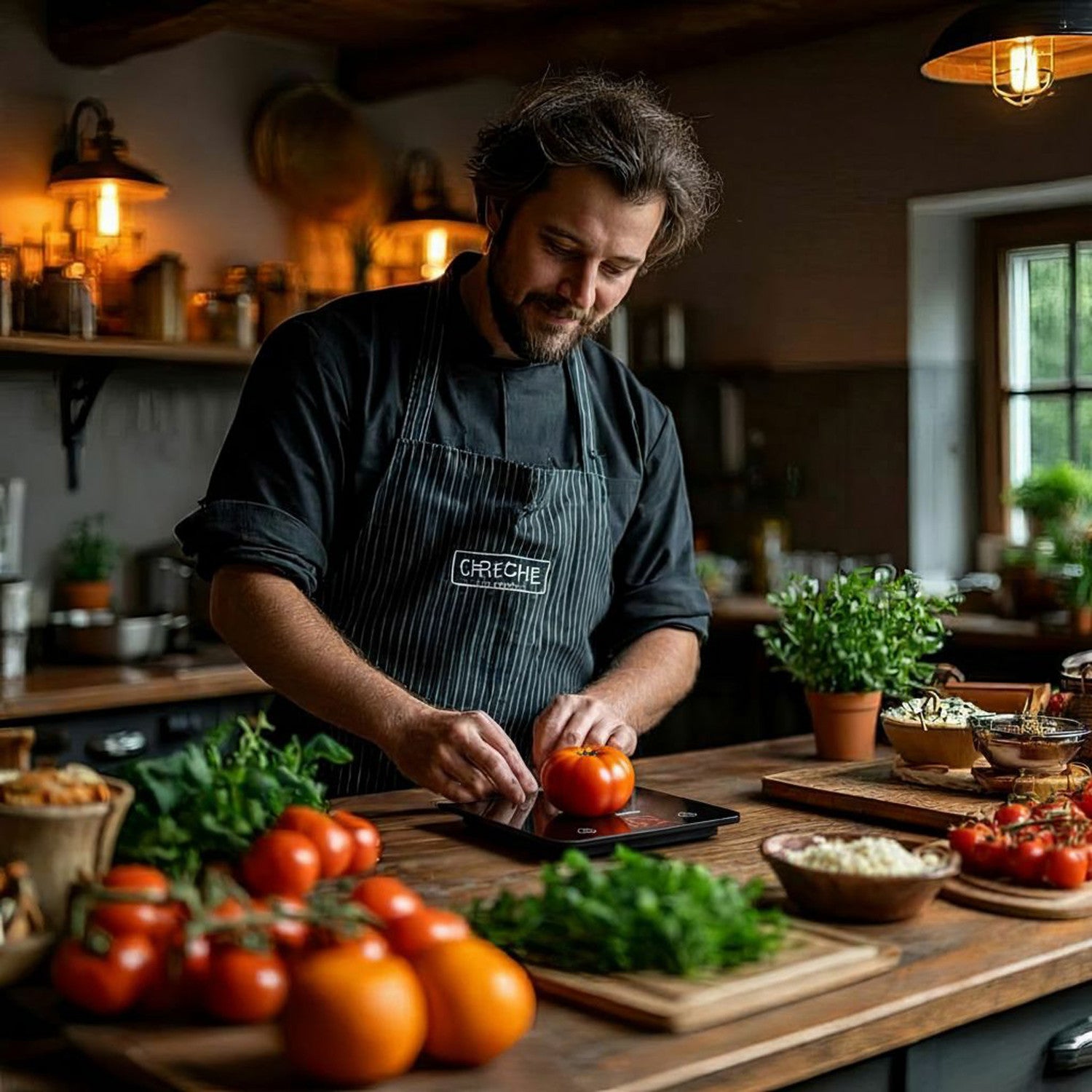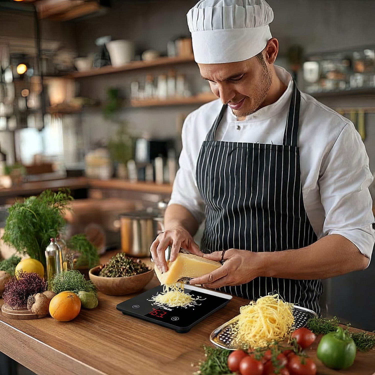 Hoogwaardige, moderne keukenweegschaal met een elegant, compact ontwerp.