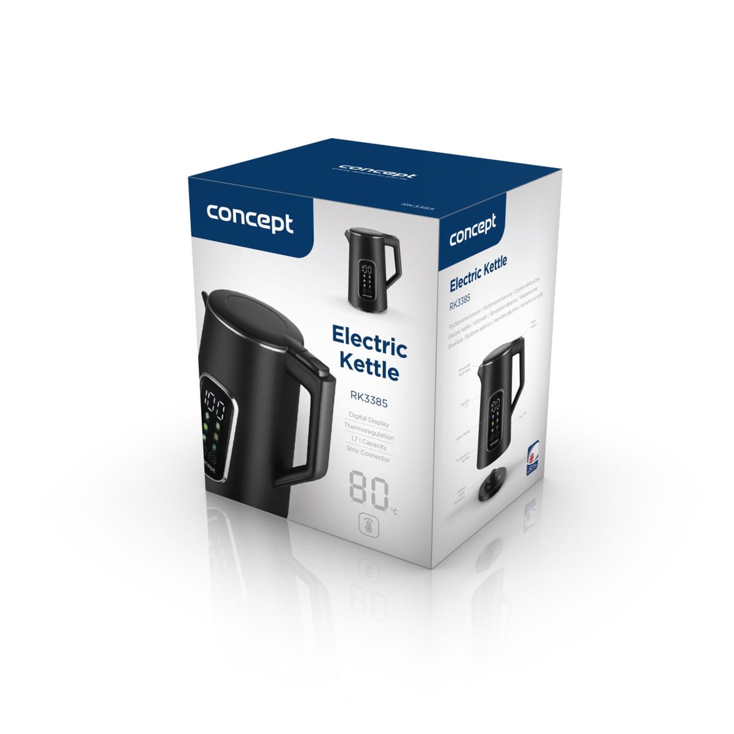 De RK3385 elektrische waterkoker met een inhoud van 1,7 liter combineert modern design met praktische technologieën. Op het eerste gezicht trekt hij de aandacht met zijn elegante design en LED-kleurendisplay direct op de behuizing van de waterkoker.