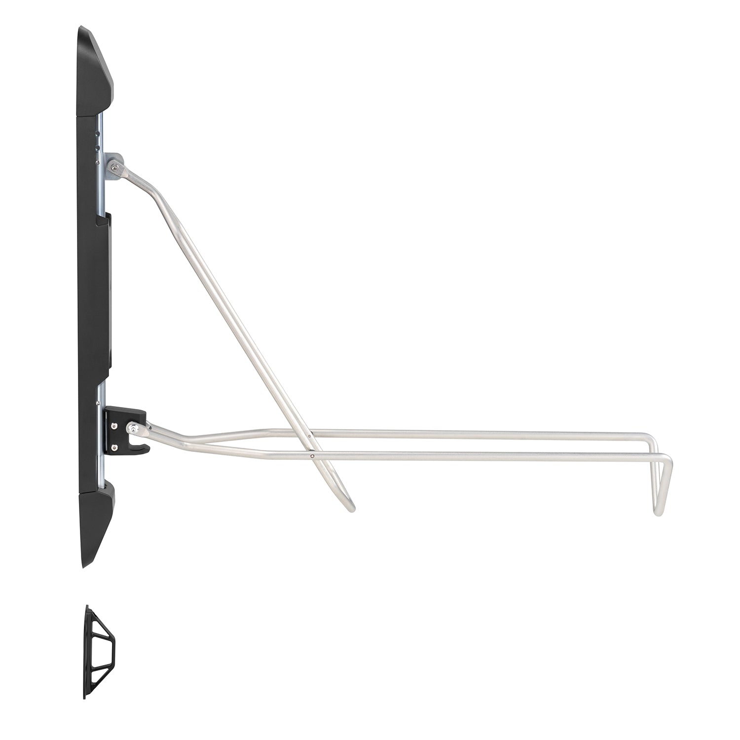De fietsdrager zorgt voor stabiliteit en veiligheid terwijl de fiets rechtop blijft staan. Dankzij de hoogteverstelling in vijf stappen (min. 112 mm max. 172 mm) kan het fietsenrek eenvoudig worden aangepast aan verschillende fietsmaten. Als de fiets is verwijderd, kan het rek worden ingeklapt om ruimte te besparen. Het fietsenrek is daarom een veelzijdige oplossing voor het stallen van fietsen op plaatsen waar de ruimte beperkt is.