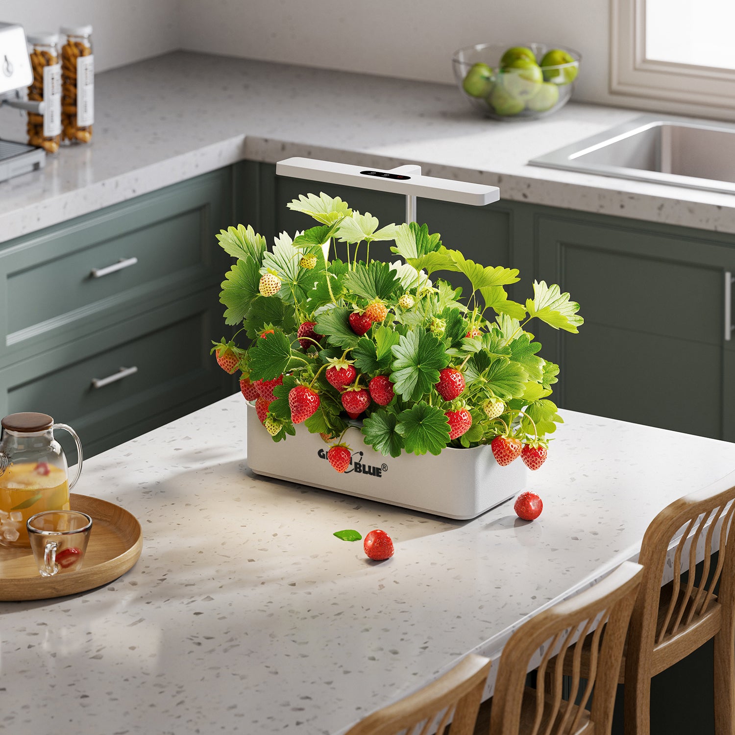 Het GreenBlue GB133 Intelligent Indoor Growing System is een ultramoderne oplossing voor mensen die het hele jaar door willen genieten van verse kruiden, groenten, fruit en bloemen, ongeacht de weers- en buitenomstandigheden. Dankzij de geavanceerde technologie biedt het apparaat een gecontroleerde omgeving waarin planten tot 3-5 keer sneller groeien dan in de traditionele grondteelt. Het is de ideale keuze voor liefhebbers van gezond koken, een biologische levensstijl en mensen die waarde hechten aan gemak.