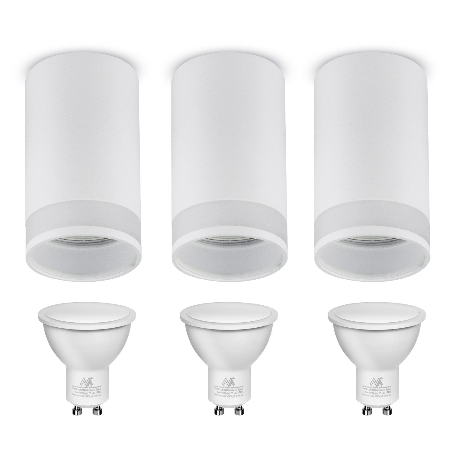 Maclean opbouw armatuur / buis, spot, rond, aluminium, GU10, 55x130mm, wit, MCE361 W 3st + LED lamp GU10 7W Maclean Energy MCE437 WW warm wit 3000K, 220-240V~, 50/60Hz 3st