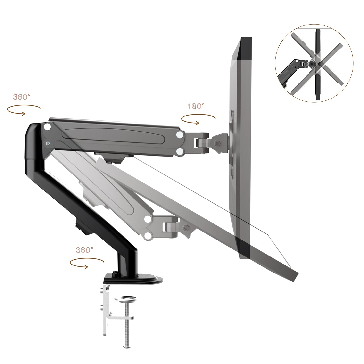 De MC-860N monitorhouder optimaliseert de ergonomie en het zicht door de hellingshoek, rotatie, hoogte etc. aan te passen. Een dergelijke oplossing komt het werkcomfort ten goede en helpt nekpijn, rugpijn en visuele vermoeidheid te voorkomen.