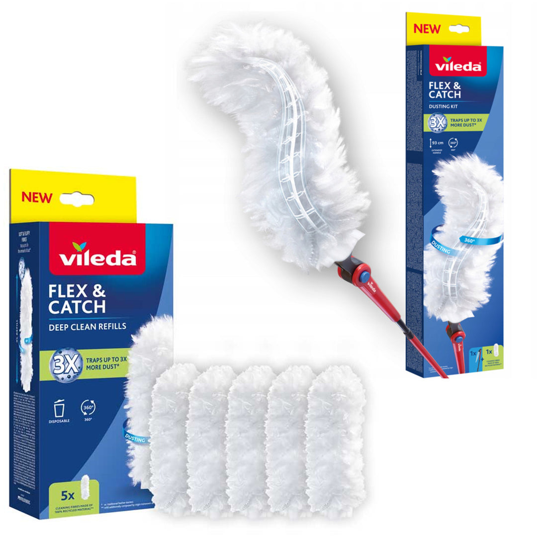 Vileda Flex&Catch stofveeg, met lange steel, antislip, flexibele kop + 5 stofveegvullingen