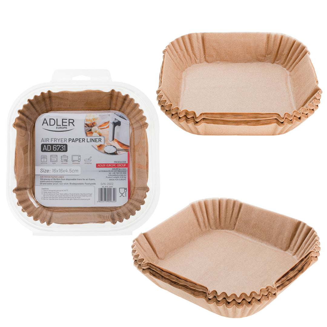 Papieren inzetstukken voor de Adler-friteuse, 16 cm, tot 240 °C, biologisch afbreekbaar, 100 stuks, AD 6731