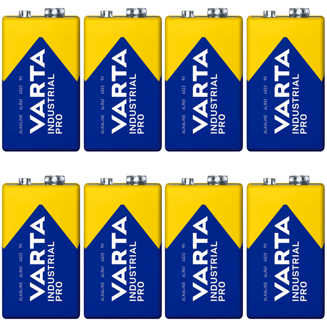8x batterij R9V R-9 6LR61 9V R-9 alkaline Varta Industrial Pro