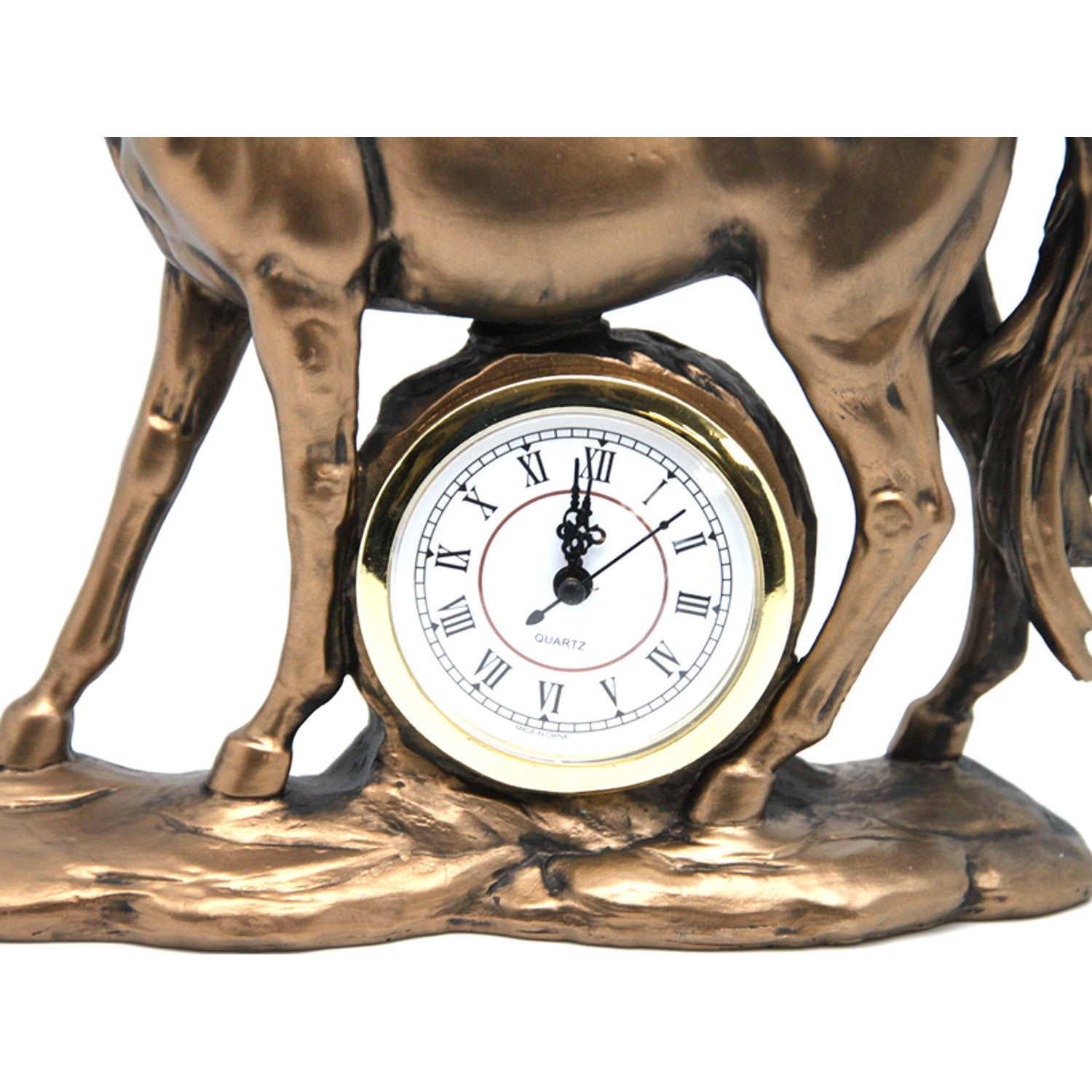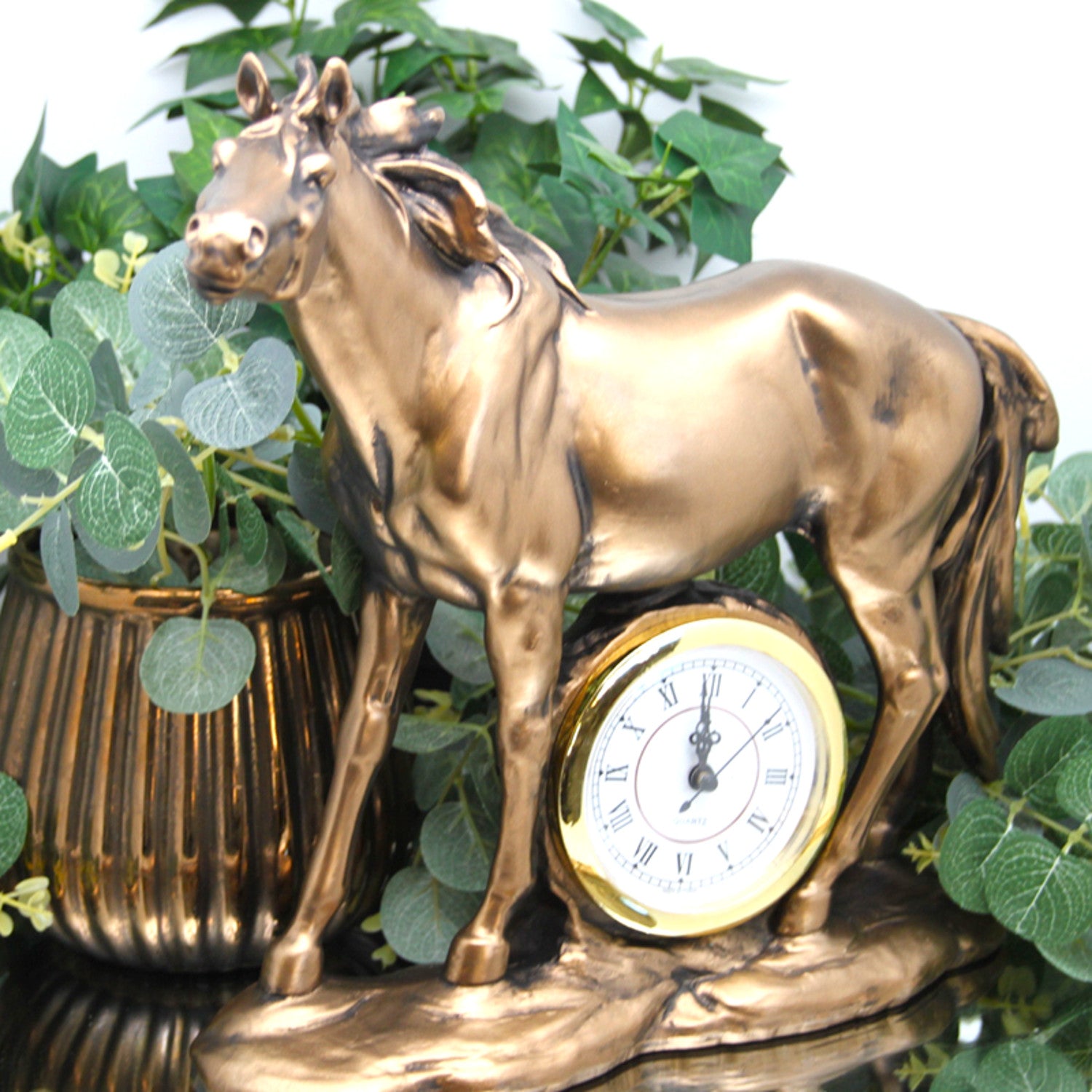 De elegante decoratieve klok in de vorm van een staand paard is een combinatie van functionaliteit en artistiek design. Hij heeft een klassieke stijl met een antieke afwerking en past perfect in geraffineerde interieurs.