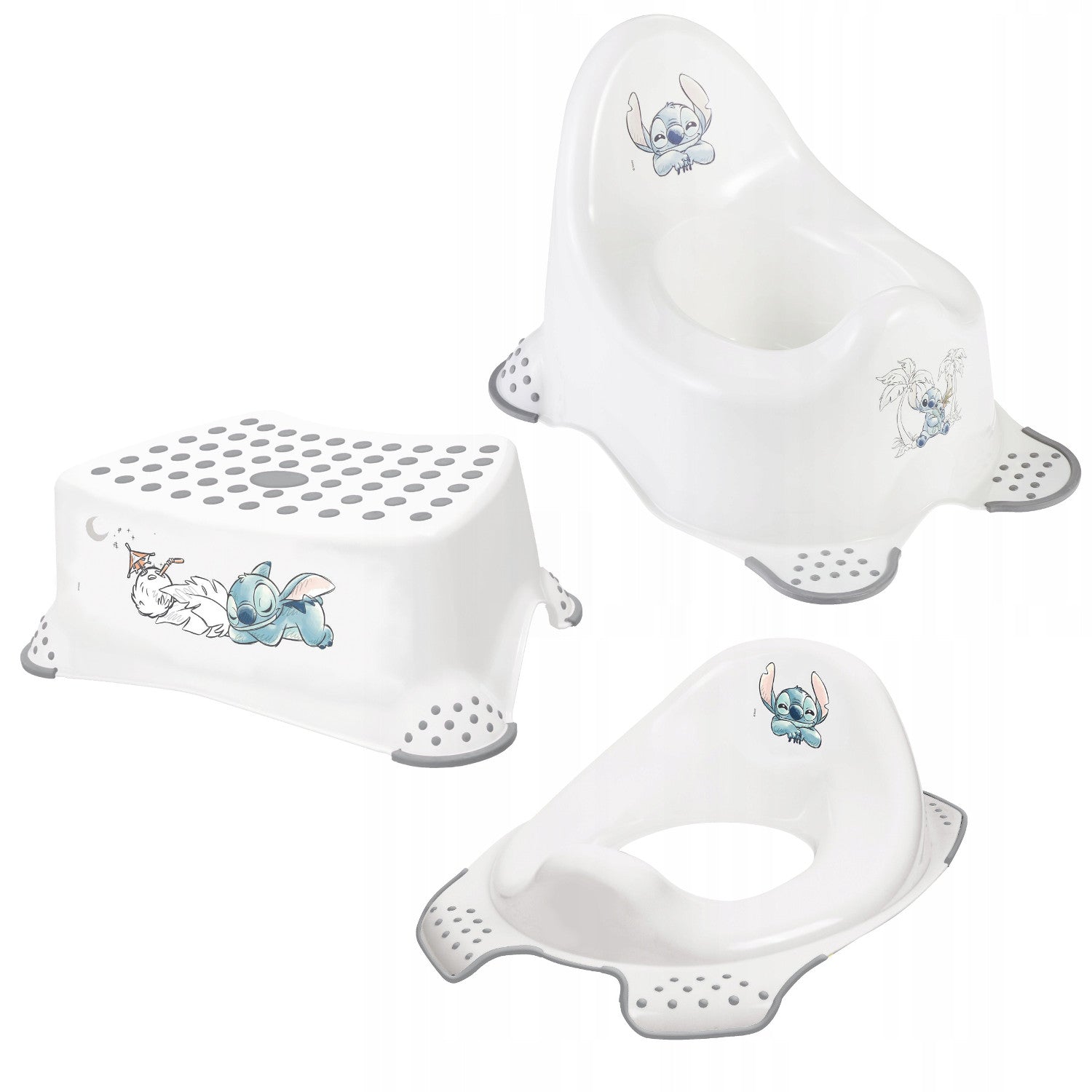Antislip opstapje, één trede, max. 80 kg + Toiletbril + Potje Stitch