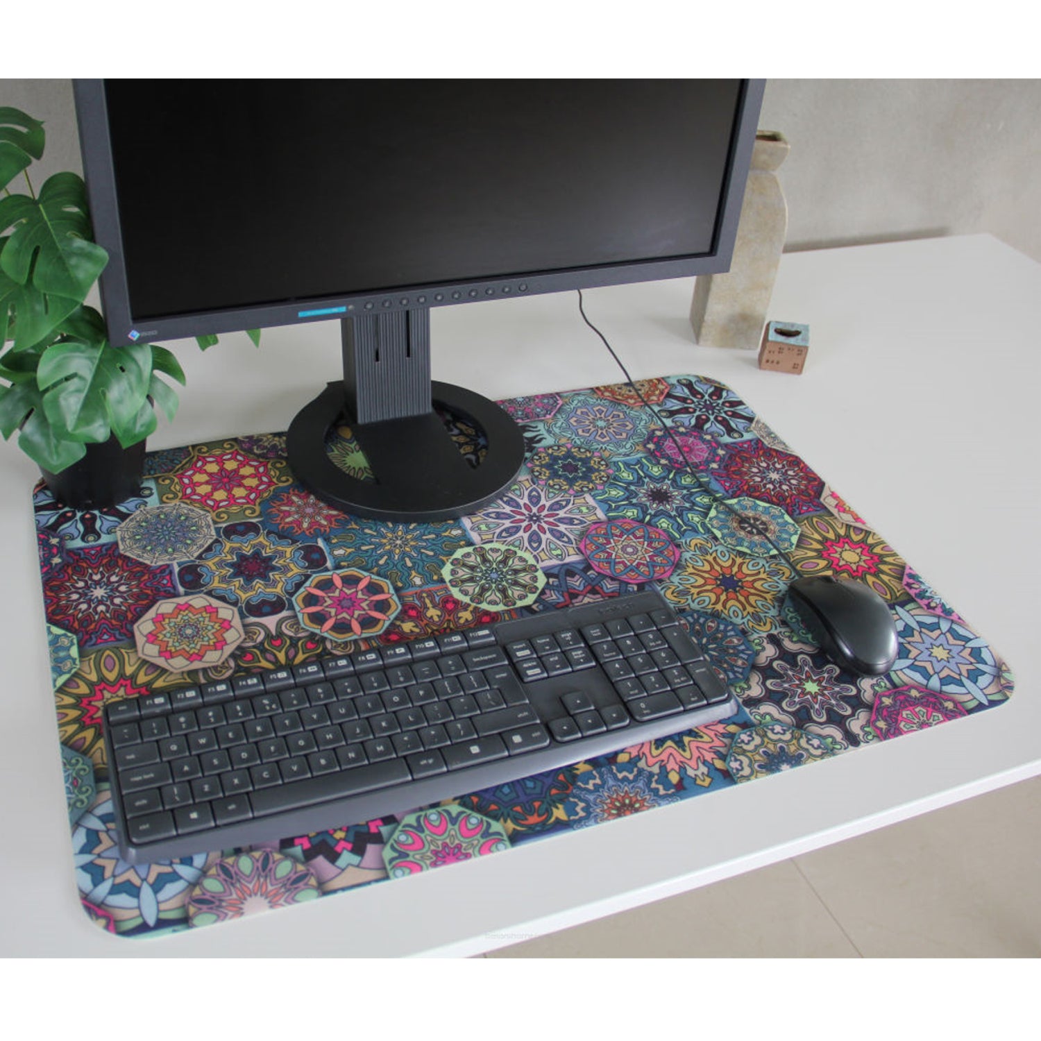 De onderlegger meet 50x70 cm, waardoor hij ideaal is voor alle soorten muizen. Dankzij de waterbestendigheid hoef je je geen zorgen te maken dat je bureau of onderlegger onder water komt te staan terwijl je werkt. Bovendien is hij duurzaam en slijtvast, wat een langdurig gebruik garandeert.