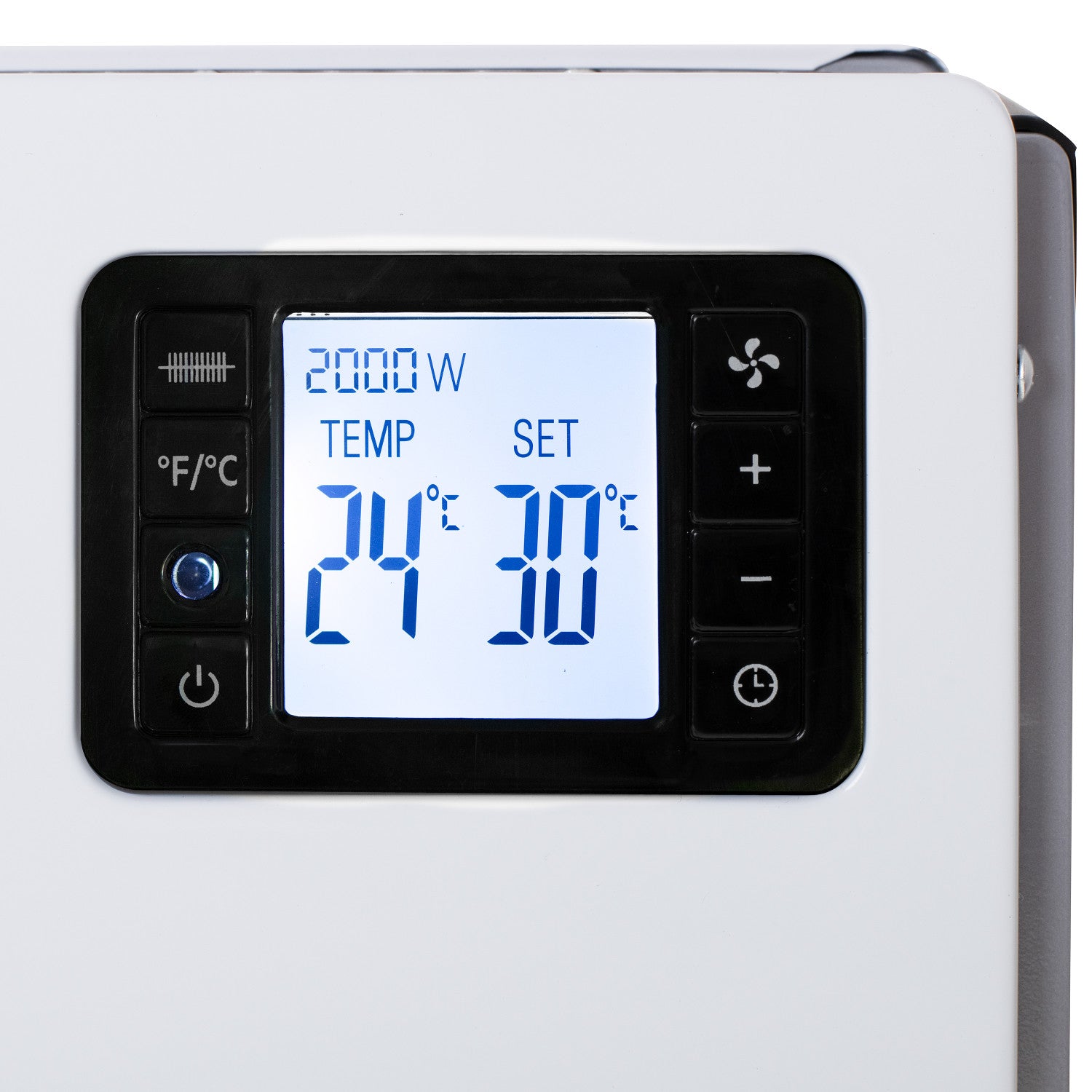Afgezien van het feit dat de convectorkachel er elegant uitziet in interieurs, kan echt iedereen hem bedienen. Er zit een LCD-bedieningspaneel op het apparaat, op een prominente plek, waar je de huidige instellingen kunt aflezen, en er wordt een afstandsbediening meegeleverd zodat je het apparaat zelfs van een afstand kunt instellen. Bovendien kun je een timer instellen wanneer je het apparaat wilt starten. Je kunt een van de drie verwarmingsniveaus op het apparaat selecteren (750 W/1250 W/2000 W) en de thermostaat zelf instellen.