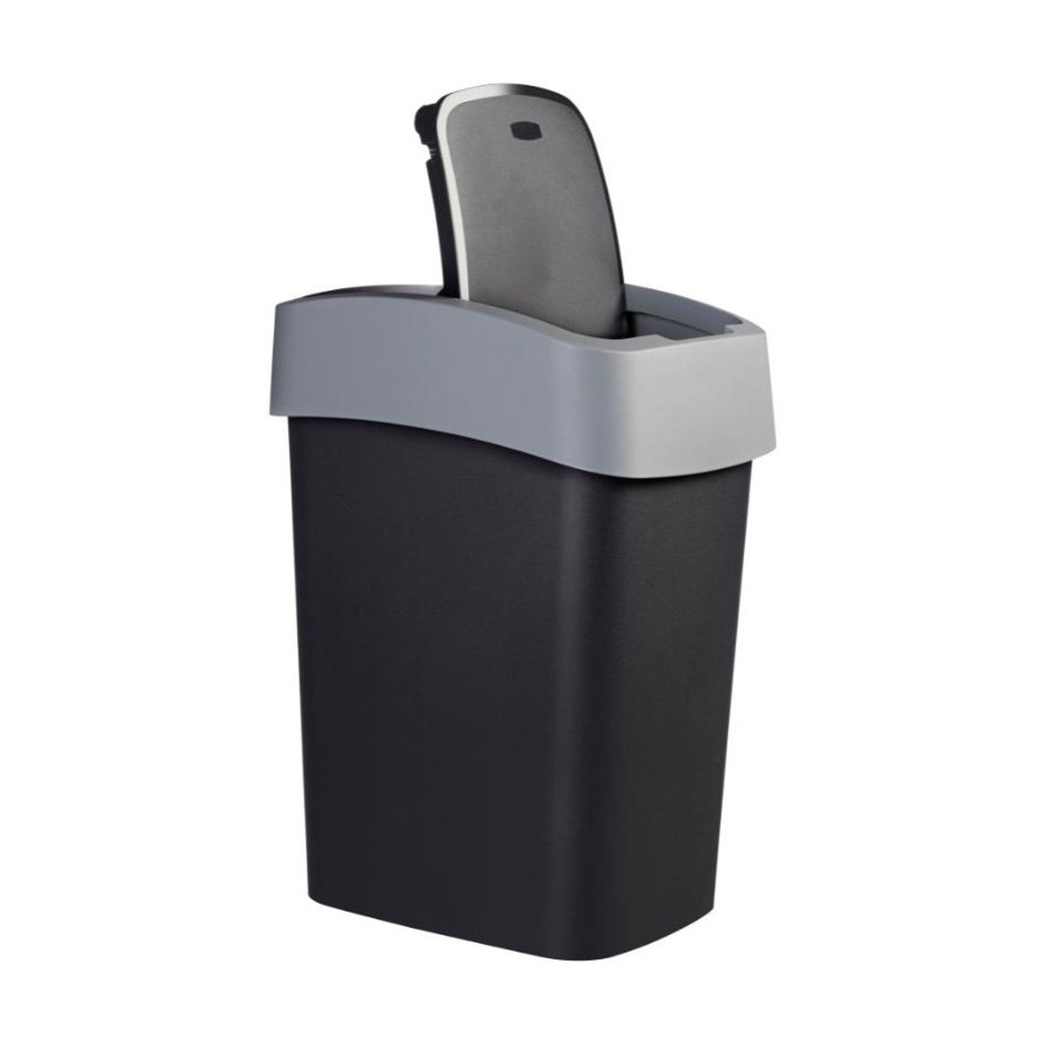 Curver afvalbak, met deksel, scharnierend, 25l, zwart/zilver, Flip Bin
