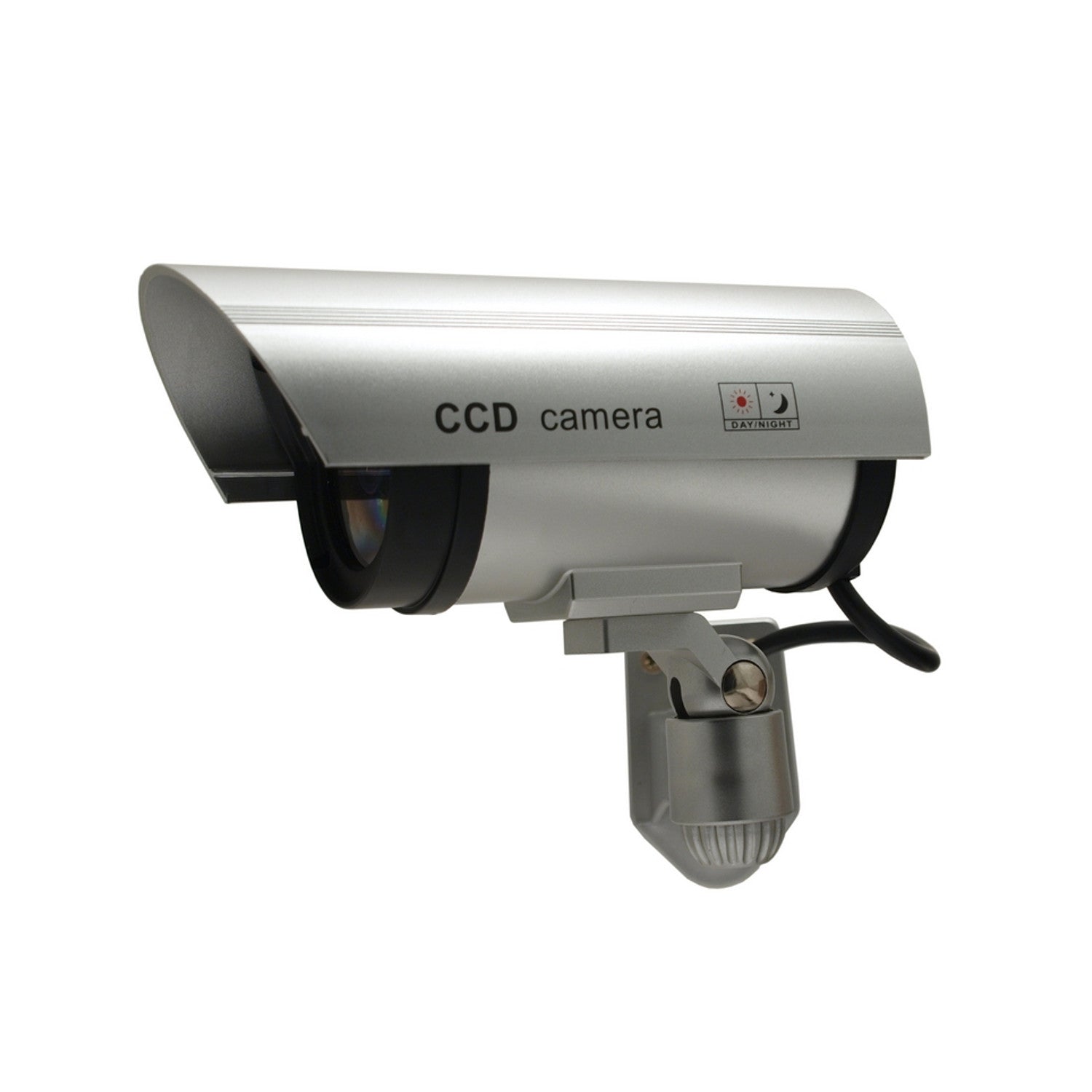Professionele imitatiecamera met imitatie IR- en rode lichtdiode. Gemaakt met hoogwaardige materialen en aandacht voor detail. Het geheel ziet er zeer realistisch uit - het zal menig dief afschrikken. Zelfs een ervaren CCTV-installateur zal niet kunnen onderscheiden of hij met een professionele CCTV-camera te maken heeft.
