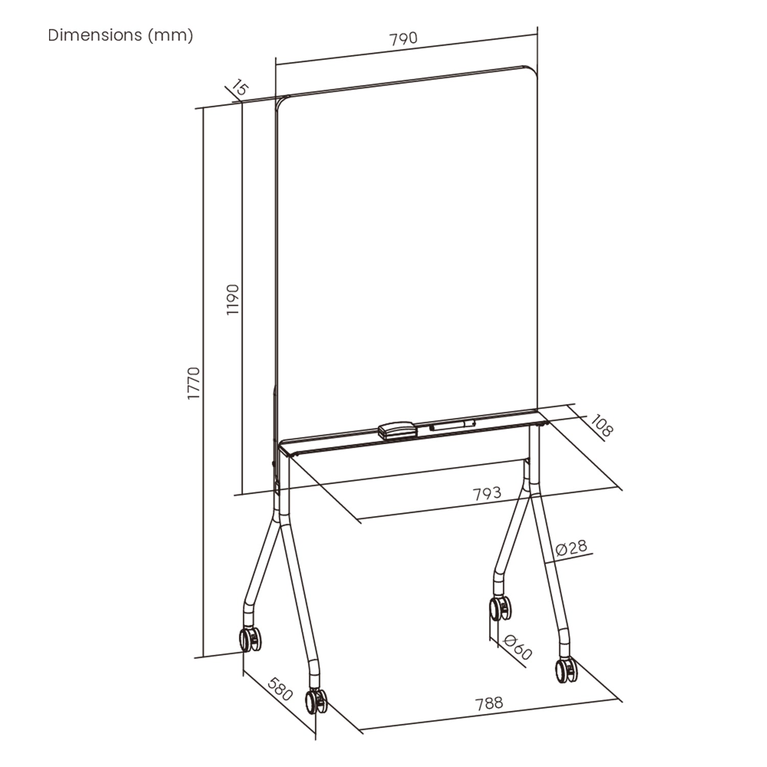Het whiteboardoppervlak van 119x79 cm biedt voldoende ruimte voor notities, schetsen of tekeningen zonder al te veel ruimte in beslag te nemen. Het is de optimale maat voor zowel de directiekamer als het thuiskantoor.