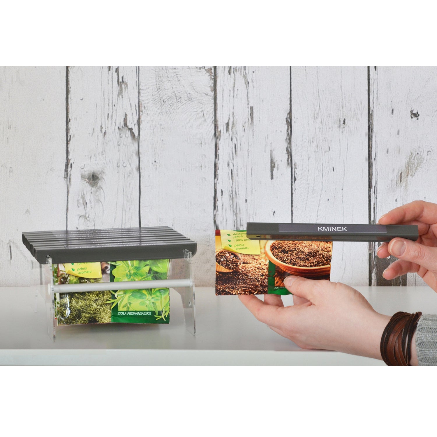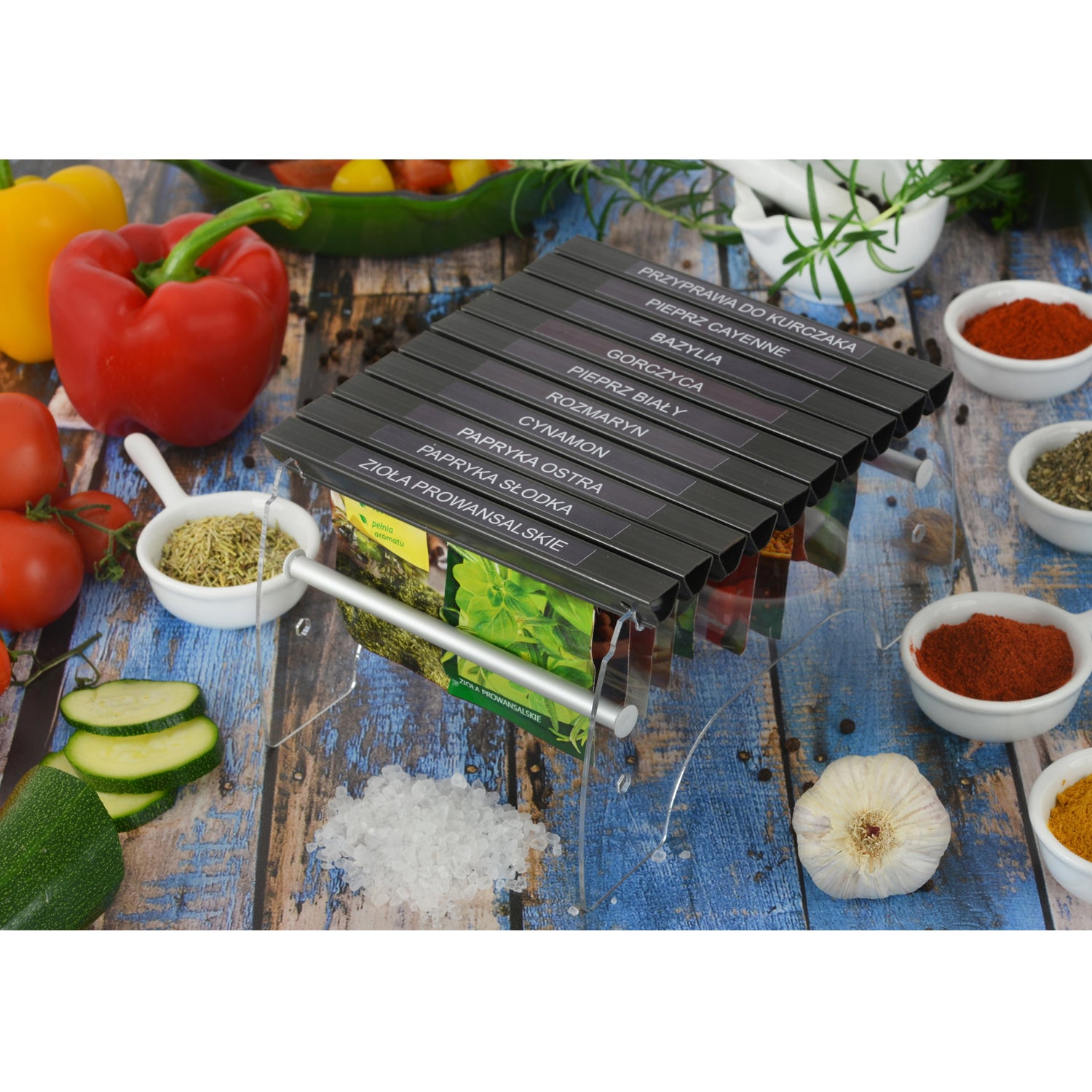 Revolutionaire en originele organizer van spice bags. Het is de ideale oplossing voor alle liefhebbers van goede keuken en orde, en is ook een uitstekende keuze voor een minimalistische keuken.