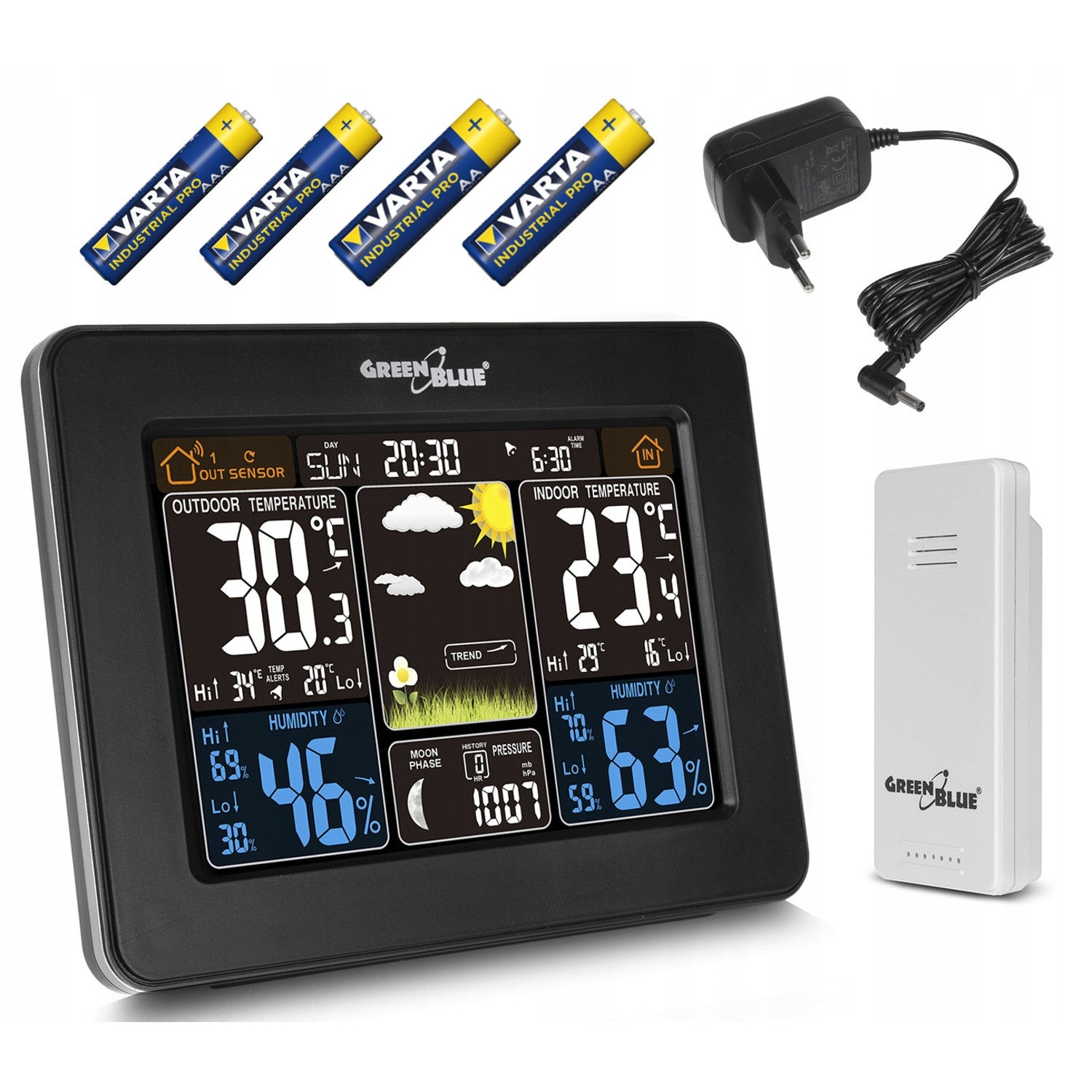 Modern GreenBlue GB523 weerstation met groot, gemakkelijk af te lezen display.