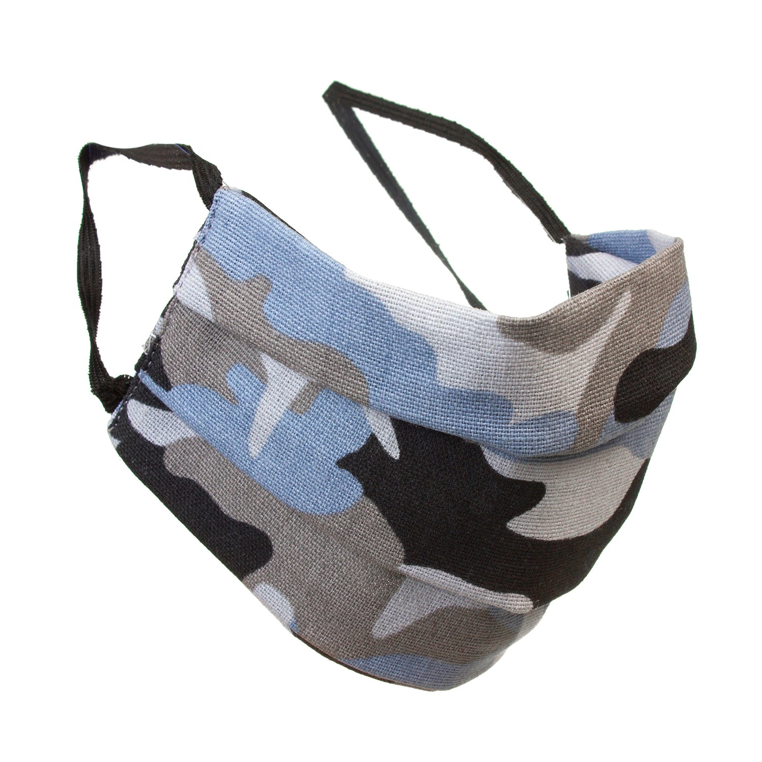 Herbruikbaar beschermend masker met een katoenen elastiek - grijze en blauwe camouflage