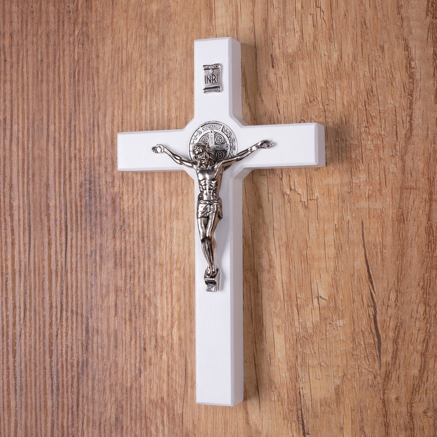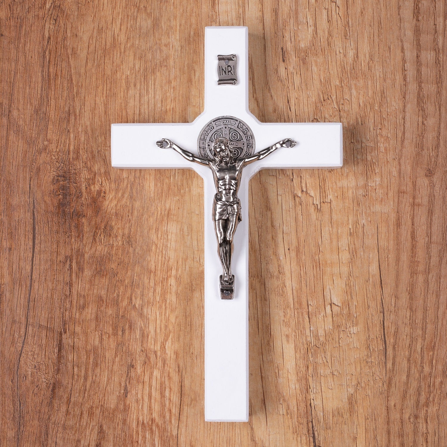 - Benedictuskruis in hout, wit 22x12x1,8cm