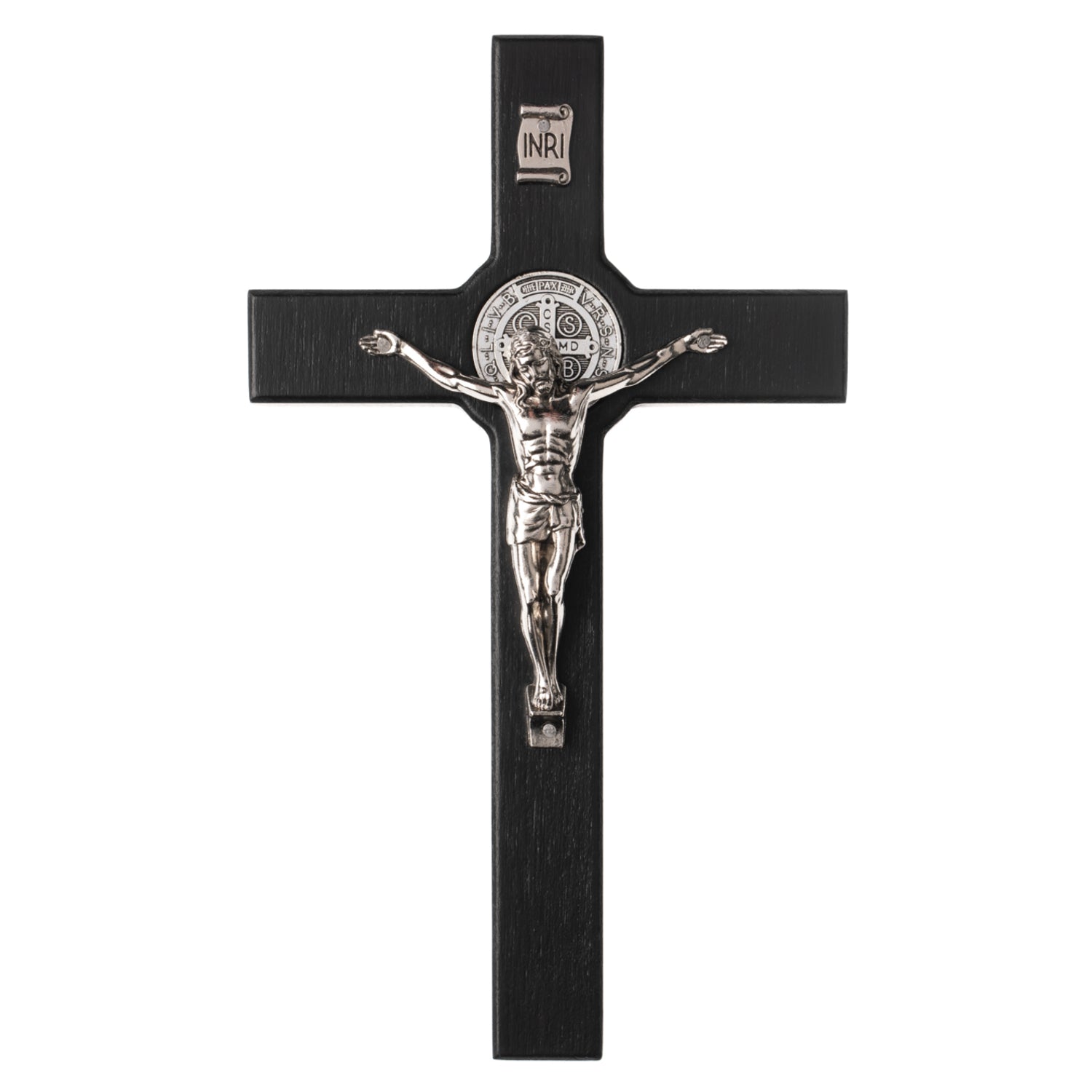 Houten Sint Benedictus kruis hangend met pasque zwart 18x10x1.8cm