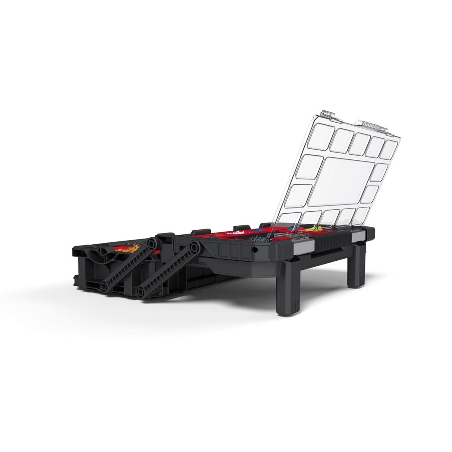 Een logische keuze voor professionals en weekendtrippers die gemakkelijk toegang willen tot al hun gereedschap en accessoires. Deze compacte organizer heeft een handig systeem met 2 niveaus en veel uitneembare bakken van verschillende afmetingen. Past ook als bovenste onderdeel van het Connect Rolling System.