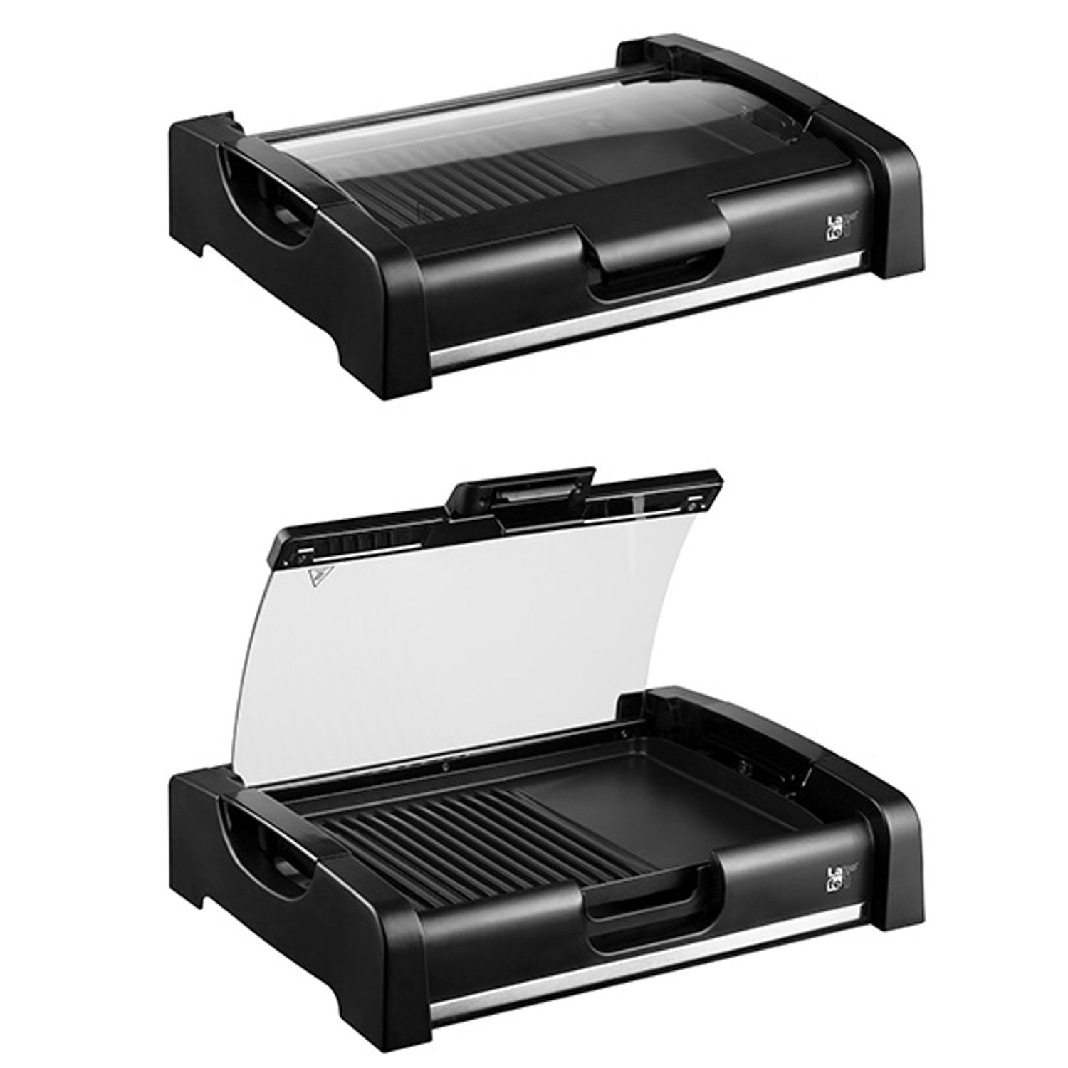 Lafe GRL003 - Grillplaat / Elektrische barbecue - grill met glazen deksel - 1650W - tafelgrill - thermostaat