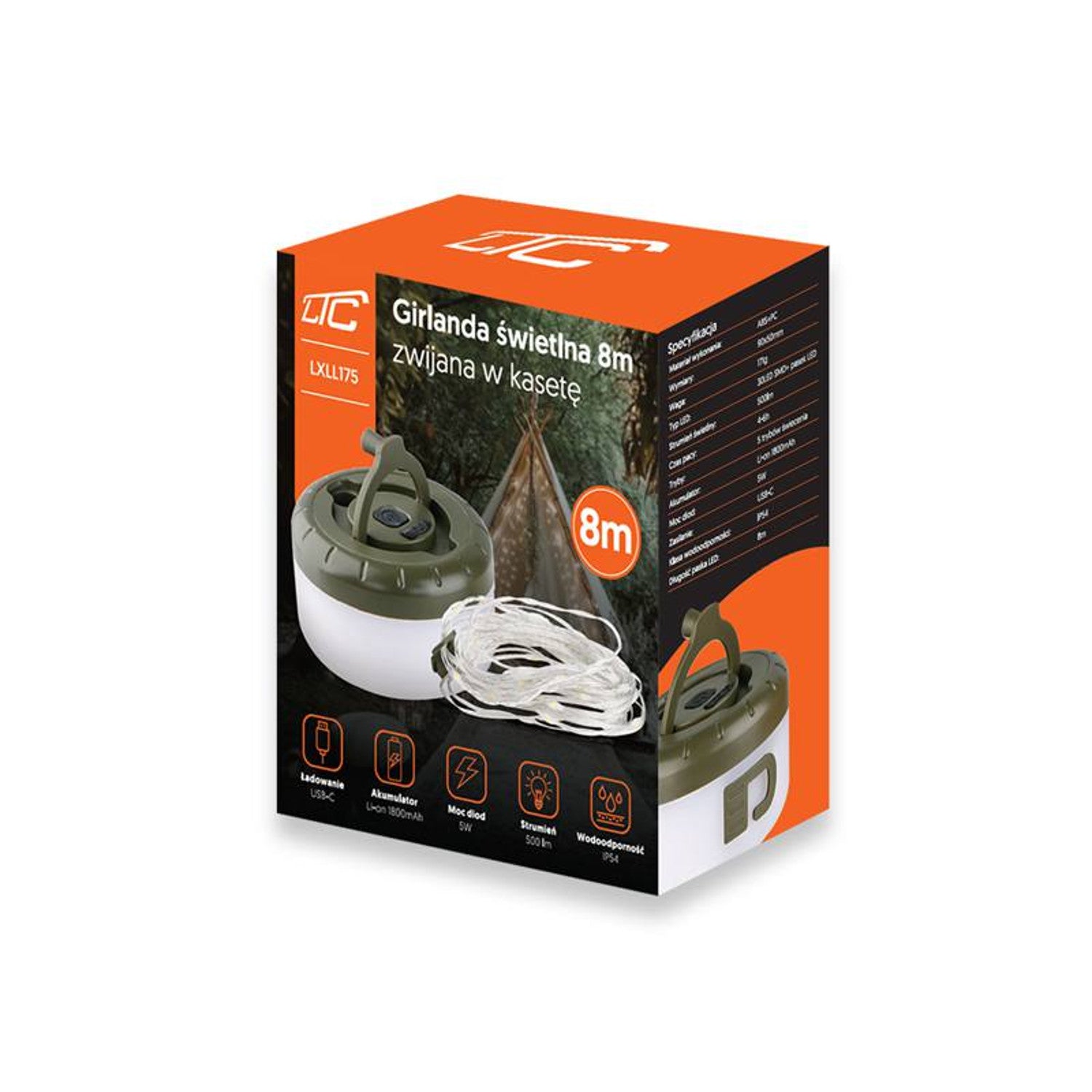 LTC intrekbare lichtslinger 8m SMD 30 5W 500lm 3000K batterij 1800mAh USB-C IP54