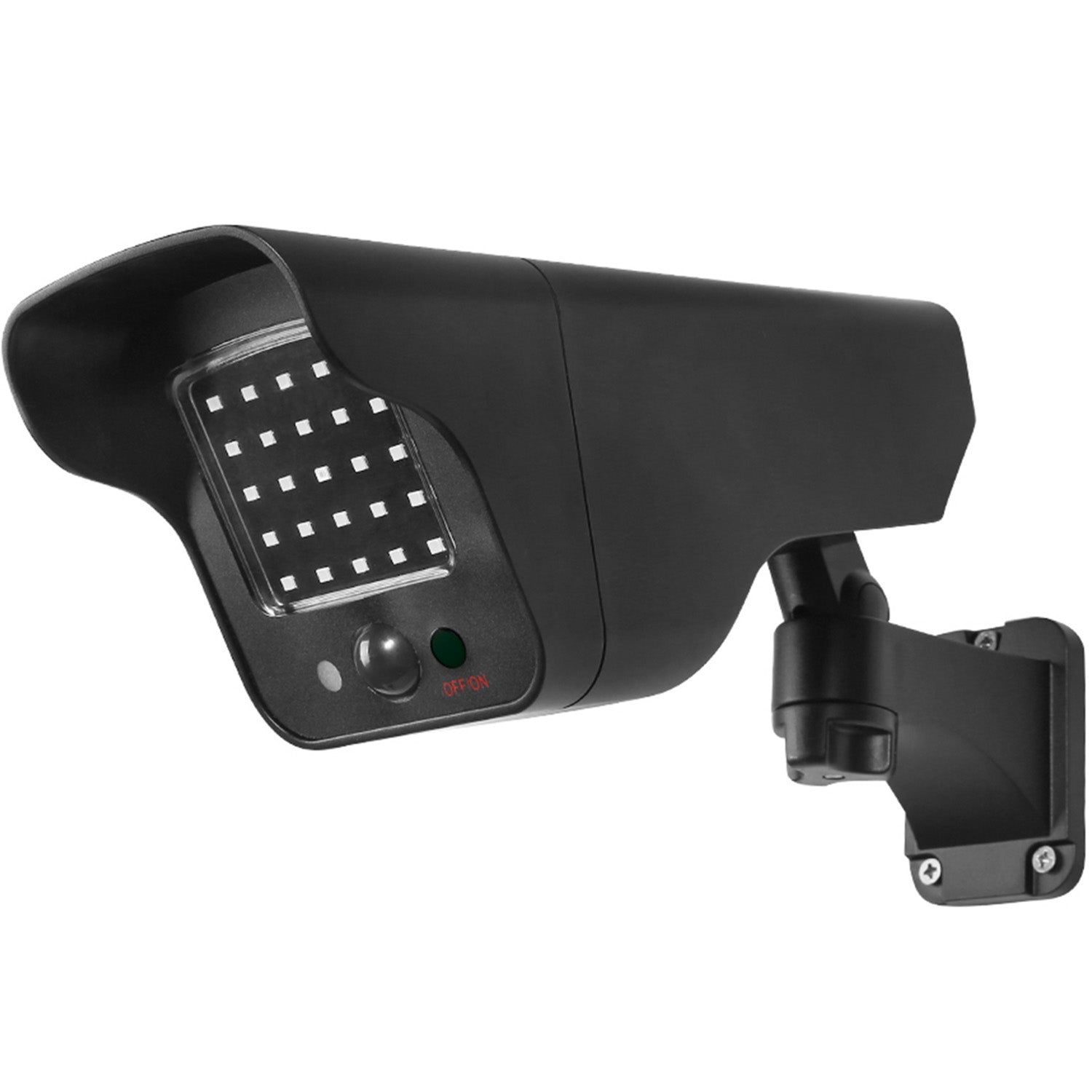 Het meest effectief zijn dummy camera's met rode LED (dankzij de diode is de dummy beter zichtbaar, vooral 's nachts, in kelders, garages, magazijnen). Onze dummy camera's zijn bovendien uitgerust met een zonnepaneel, dat de ingebouwde batterij van stroom voorziet om nachtwerking te garanderen. Dit is een zeer praktische oplossing omdat u zich geen zorgen hoeft te maken over het vervangen van batterijen wanneer deze leeg zijn.