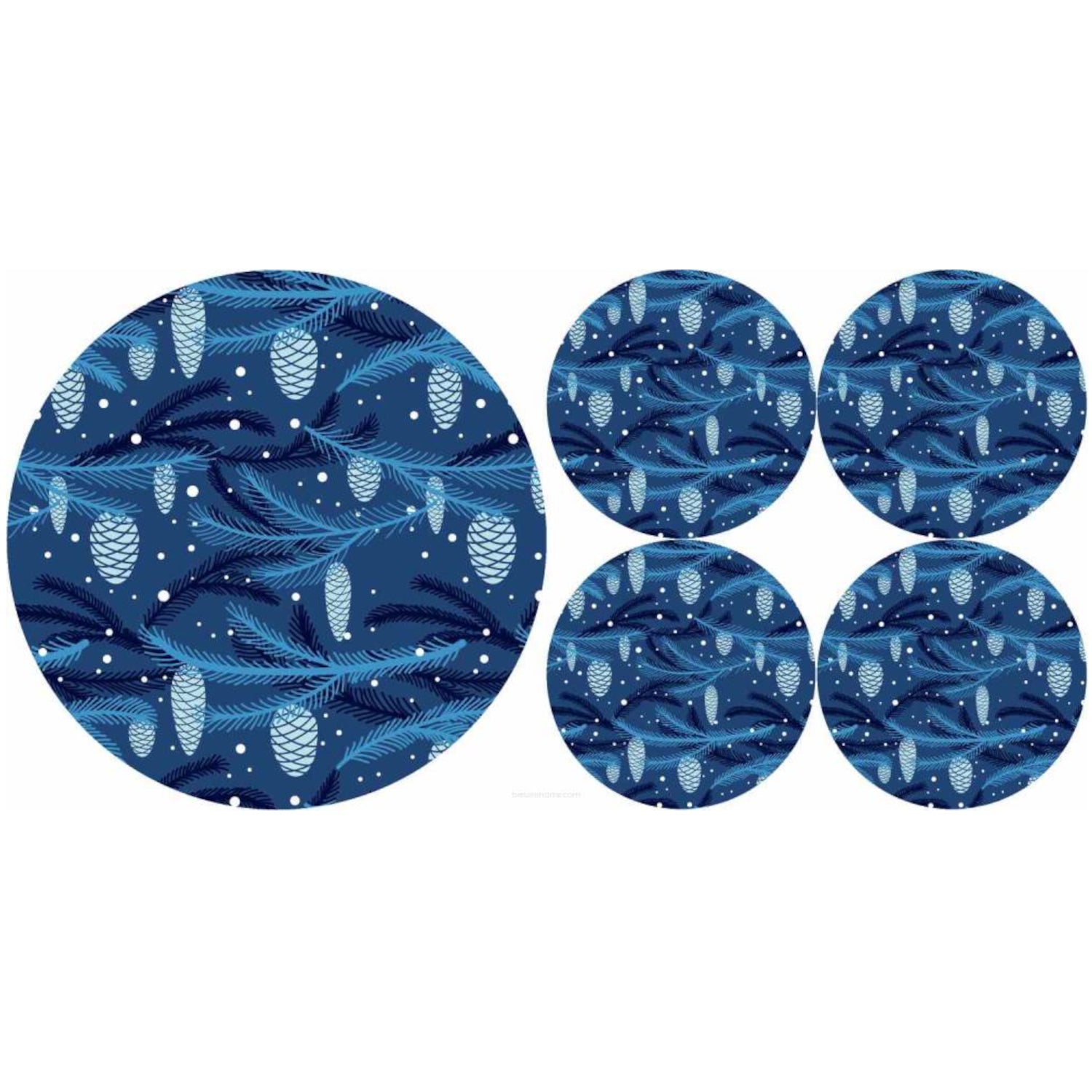 - Vier placemats met een diameter van 16 cm en één met een diameter van 33 cm