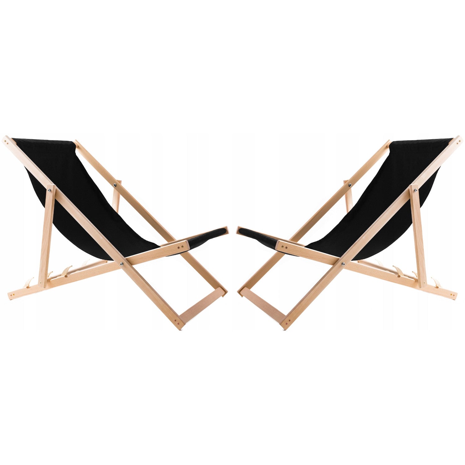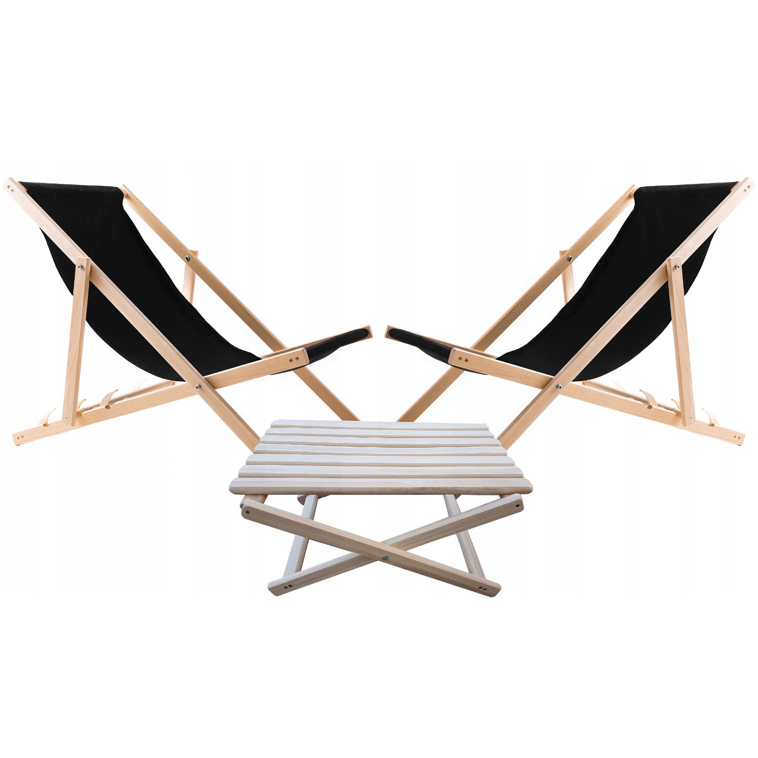 Set van 2 strandstoelen, zwart + houten salontafel Woodok