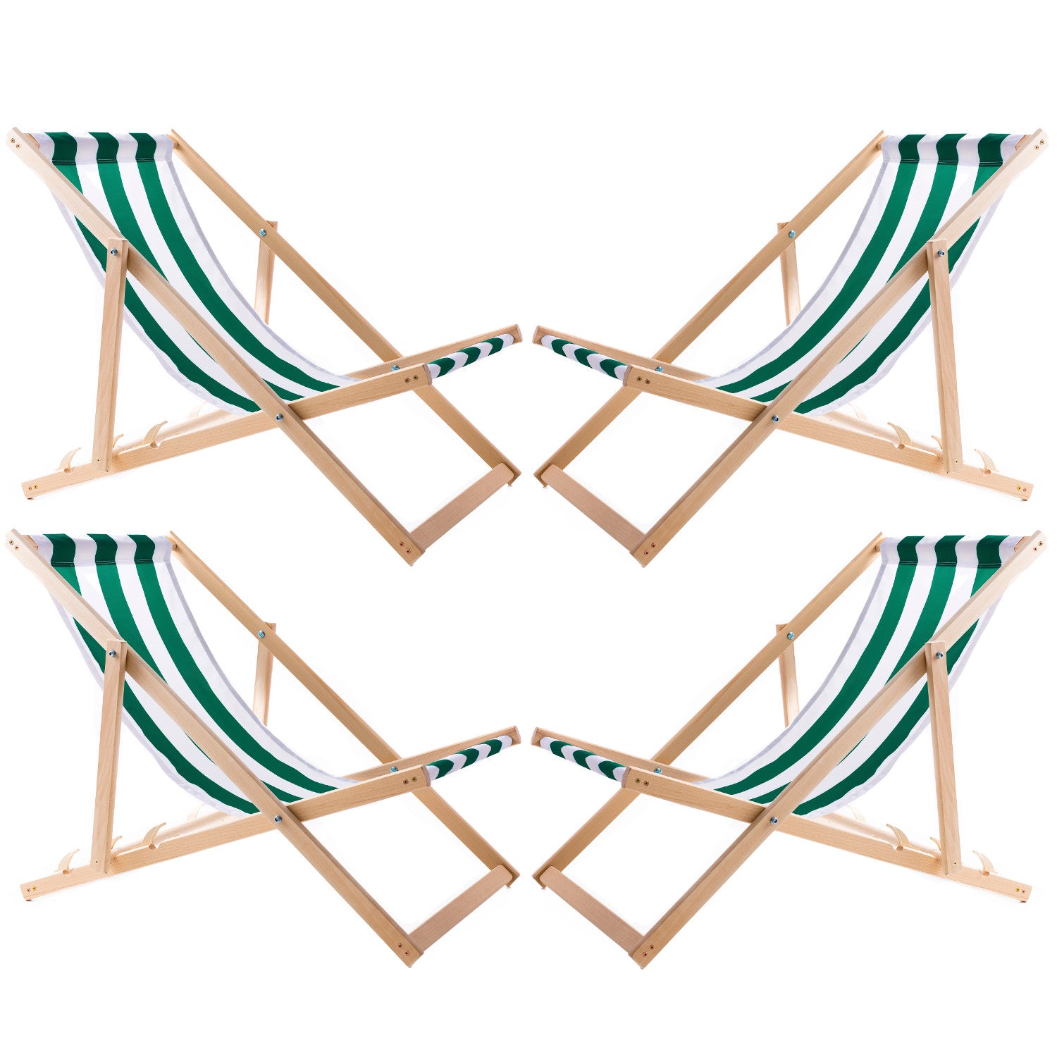 Set van vier ligstoelen, groen gestreept, Woodok, gemonteerd